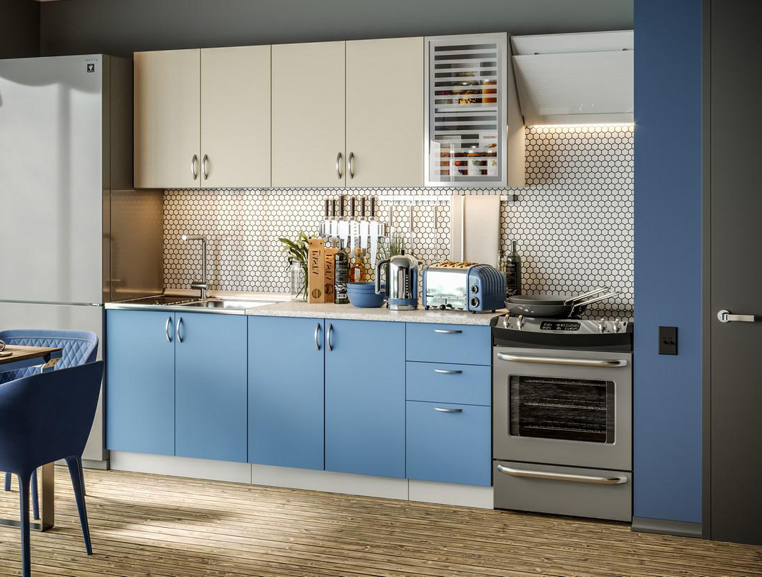 Фасад: ЛДСП бежевый/синий