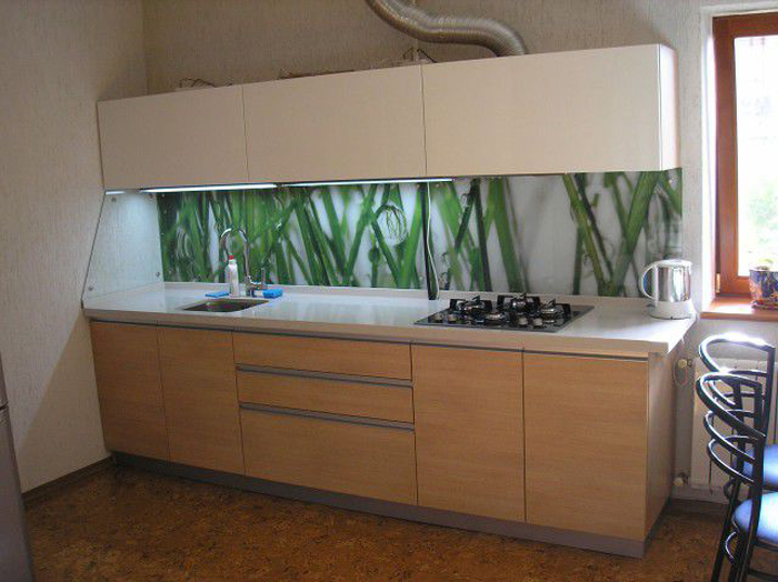 Кухня длиной 1,6 метров с гладкими фасадами из ЛДСП.