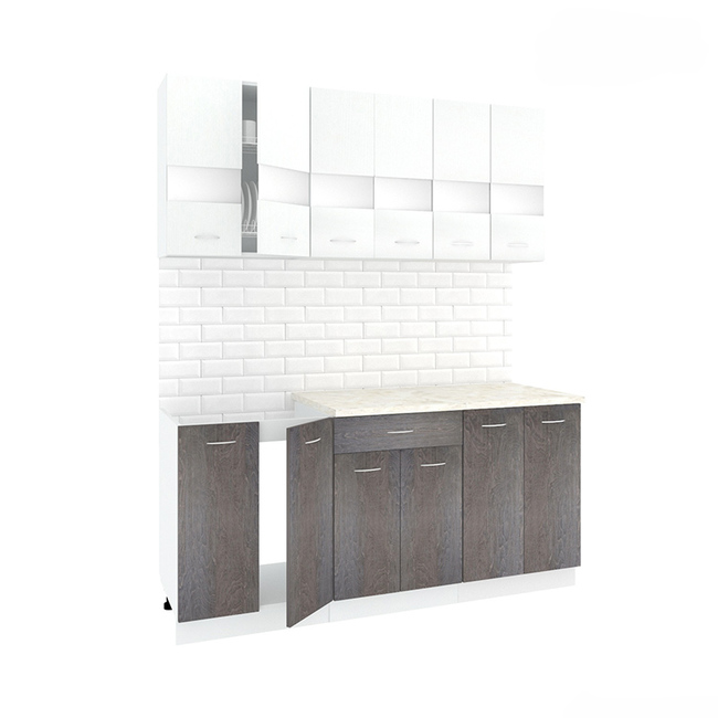 код 113530Готовый гарнитур с комбинированными фасадами из ЛДСП. Ширина кухни 180 см.
