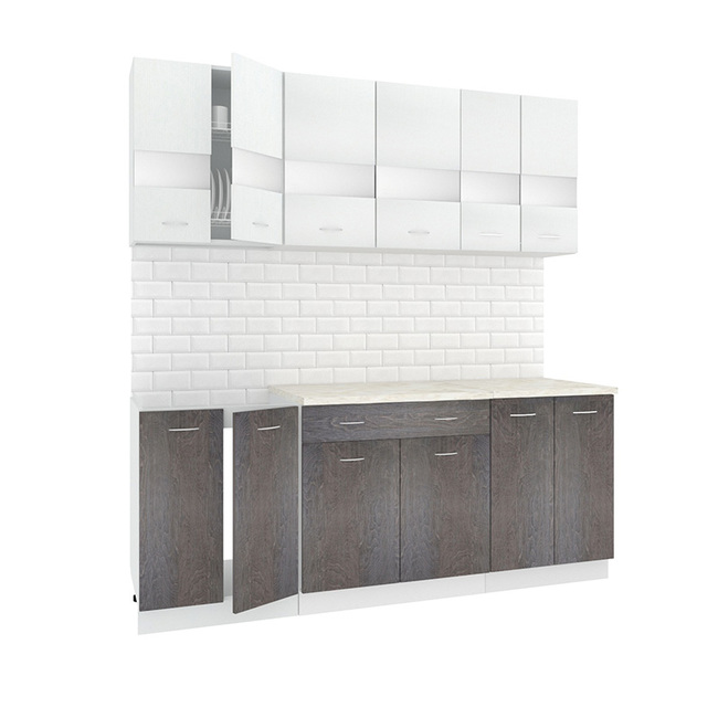 код 113550Готовый гарнитур с комбинированными фасадами из ЛДСП. Ширина кухни 200 см.