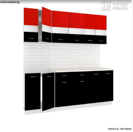 Материал фасада и корпуса: ЛДСП 16 мм. Ширина кухни 200 см.
