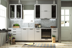 код 113574Удобные металлические ручки в цвете «сатин». Ширина кухни 220 см.