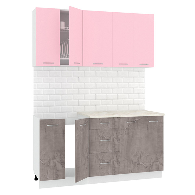 Кухня «Корнелия Лира» 1,6 розовый-оникс