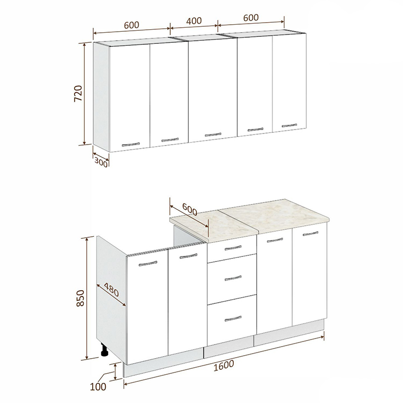 код 115372Гарнитур шириной 1,6 м для современной кухни небольшой площади.