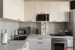 Угловая кухня с модульными шкафами. Комбинированные цвета.
