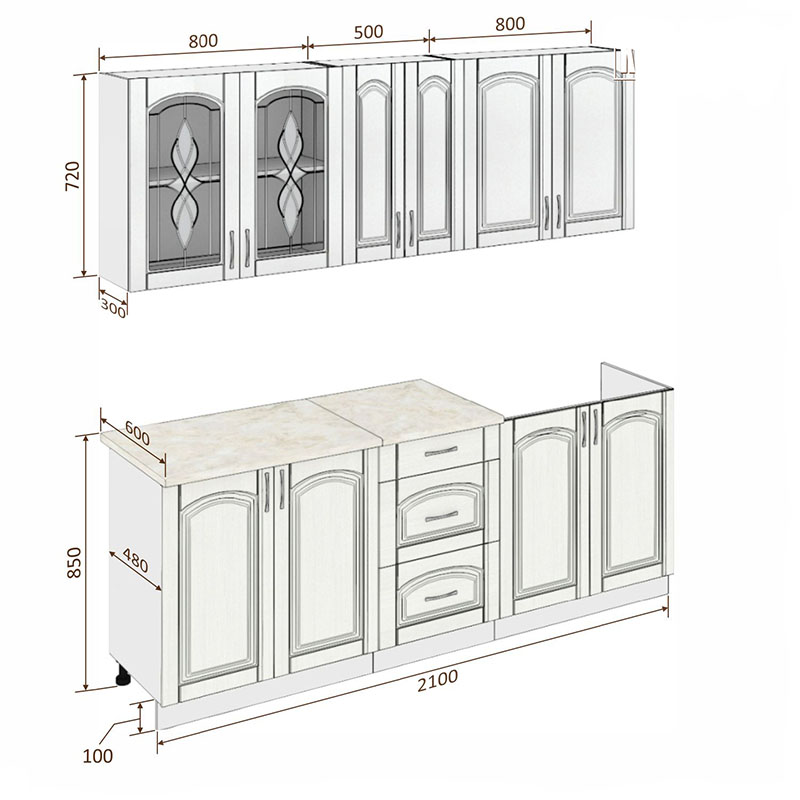 - Нижний шкаф с 2-мя полками, ШхГхВ: 80х60х85 см. Комплектуется столешницей.