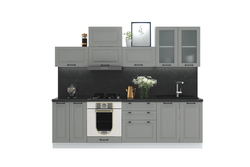 Верхние фасады со стеклом. Ширина кухни 250 см.