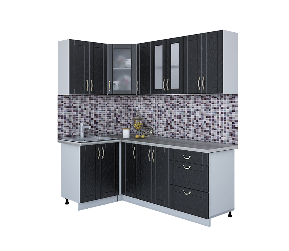Угловая модульная кухня «Mix Top» 2.5х1.52 м, дуб каньон-графит серый