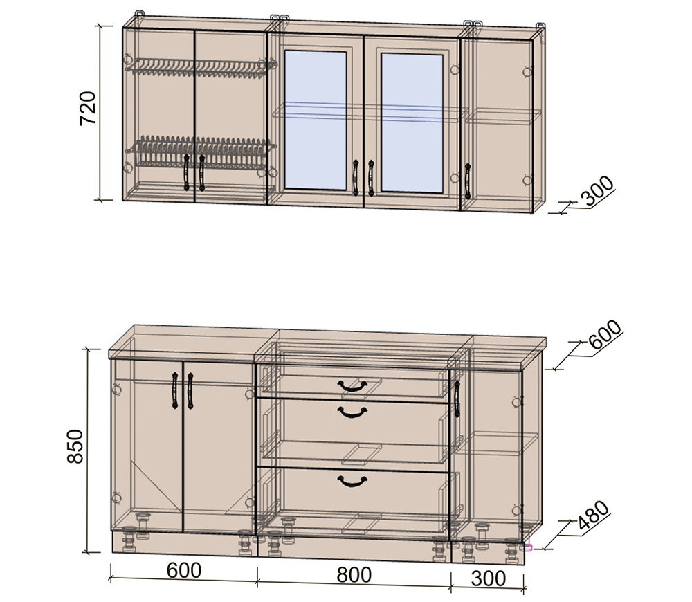 Кухня «Лира-Лайт» 2,5 крем-капучино