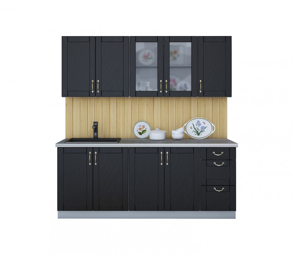 Материал фасада и корпуса: ЛДСП 16 мм. Ширина кухни 210 см.