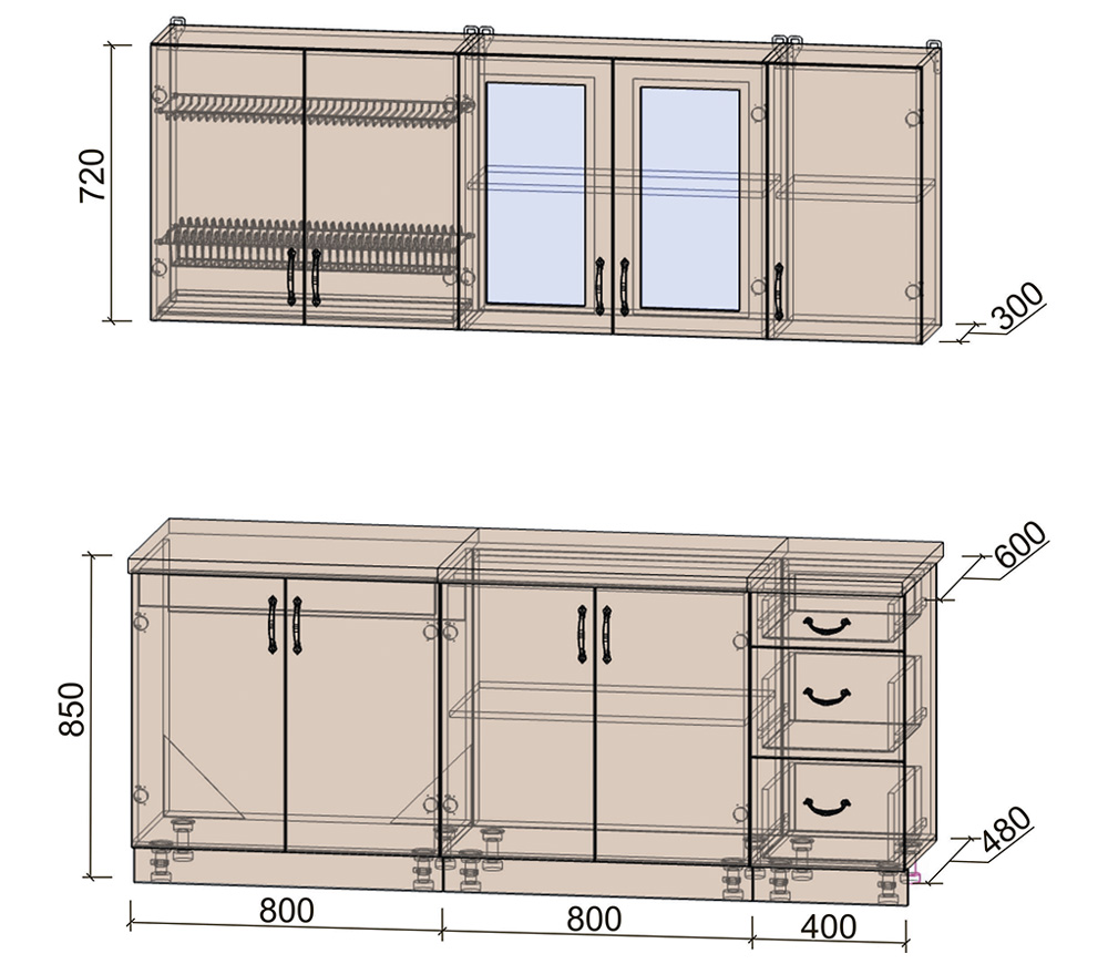 Кухня «Лира-Лайт» 1,3 крем-капучино