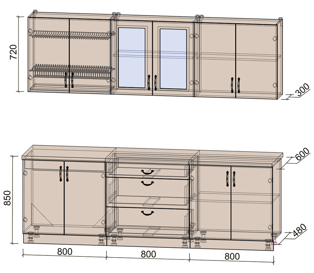 Кухня «Корнелия Ретро» 2,6 венге светлый-венге