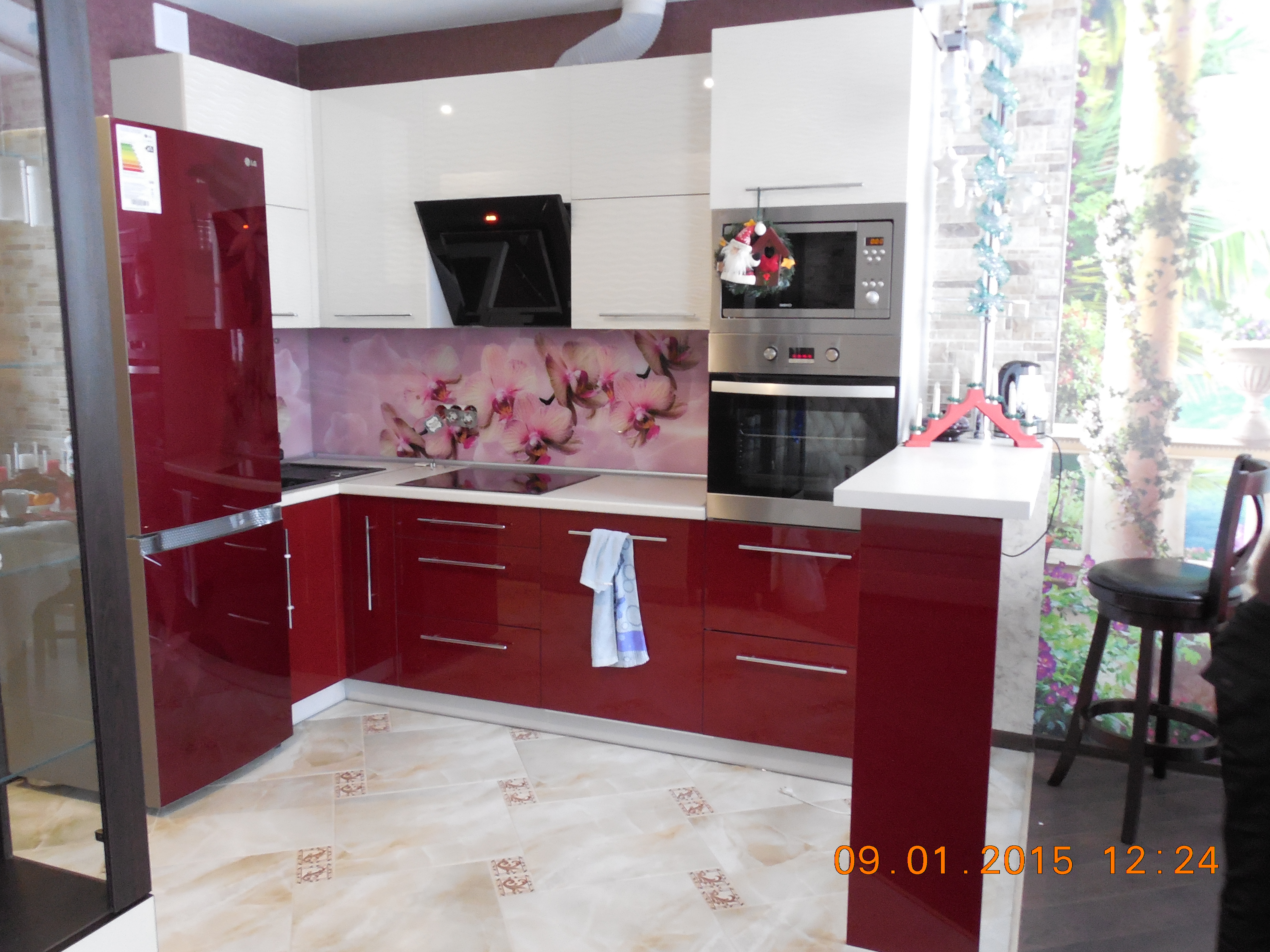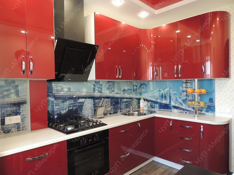 Фасады: МДФ с пластиком (Италия), цвет: «Вишня», радиусные фасады;