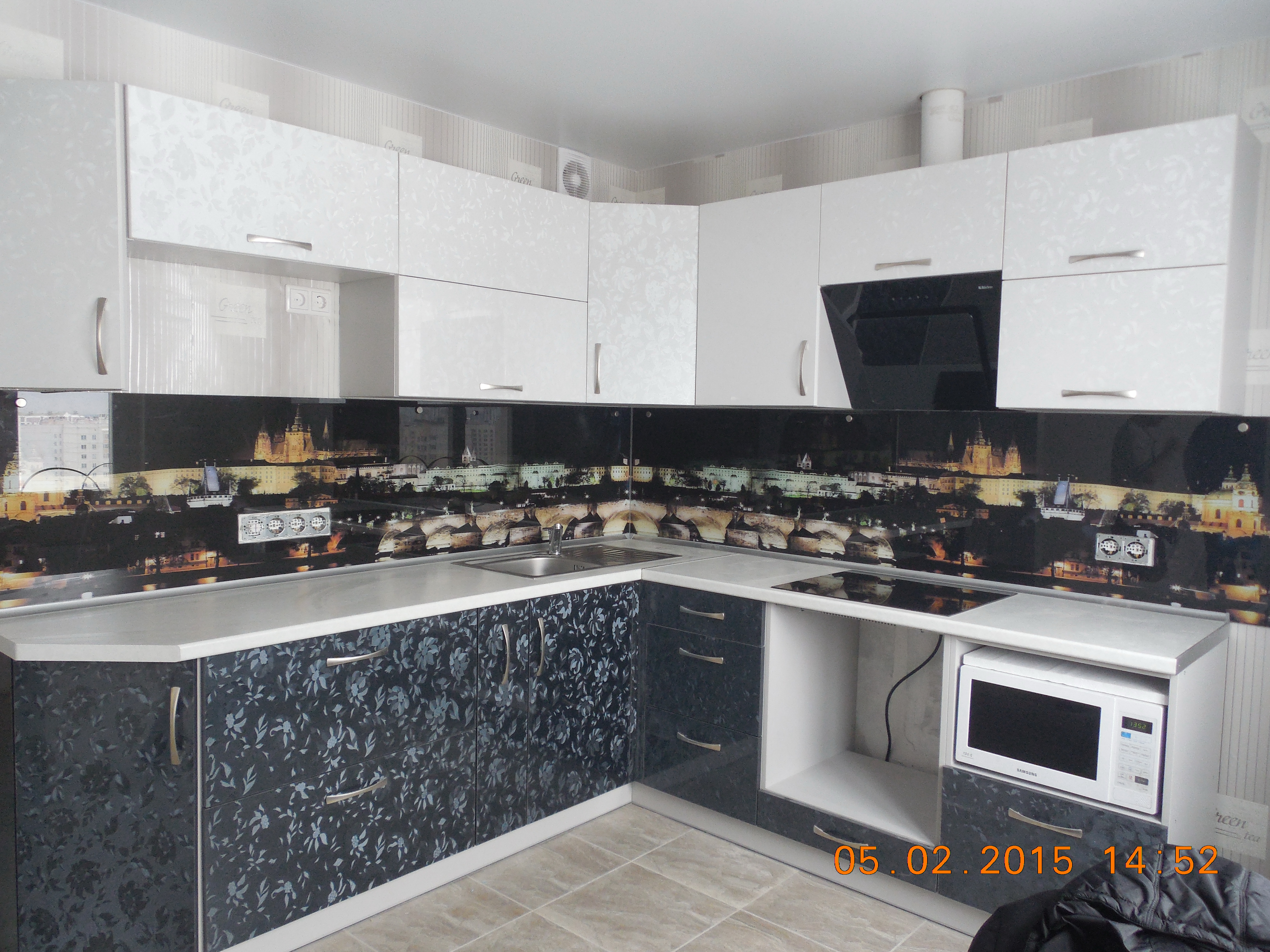 Фасады: МДФ (Турция), цвет: низ «Черные цветы», верх «Белые цветы»;