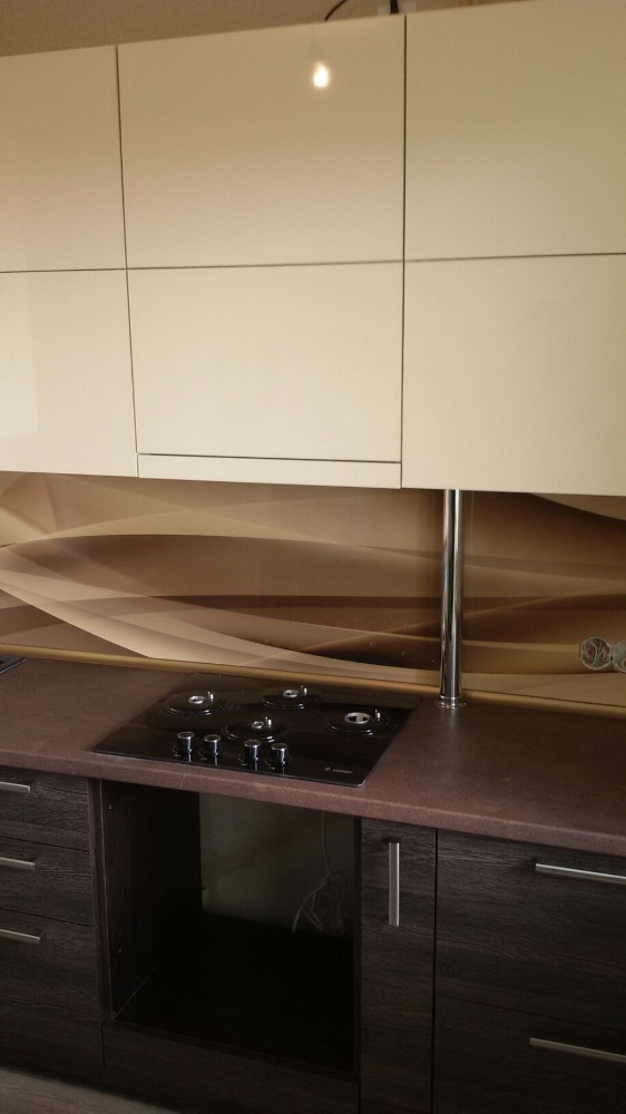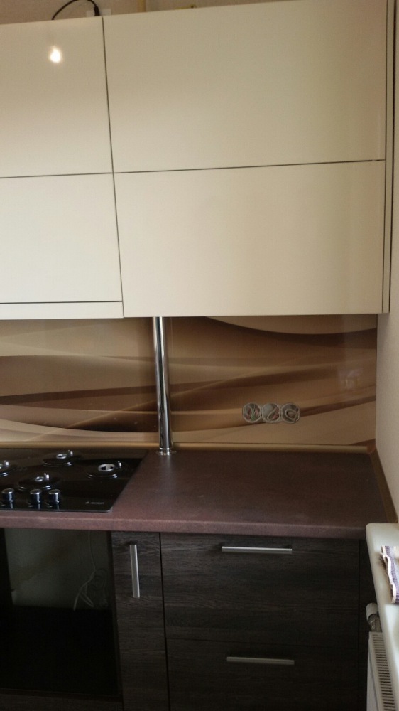 Угловая кухня из ДСП. Светлые и темные фасады. Металлическая фурнитура.