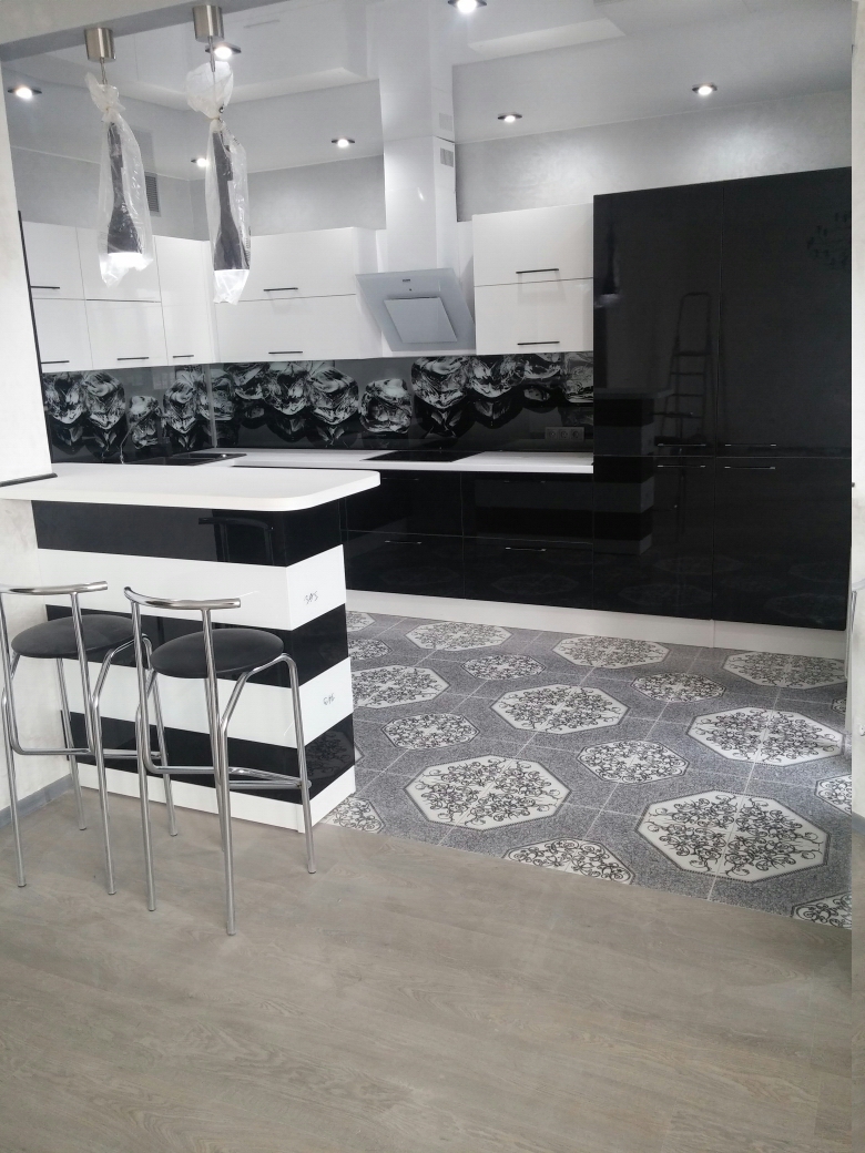 Кухня «Краш» из МДФ с барной стойкой Хай-тек