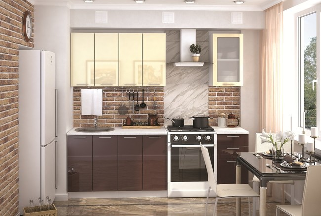 Кухня «Ксения 1.6м Шоколад глянец/Ваниль глянец»