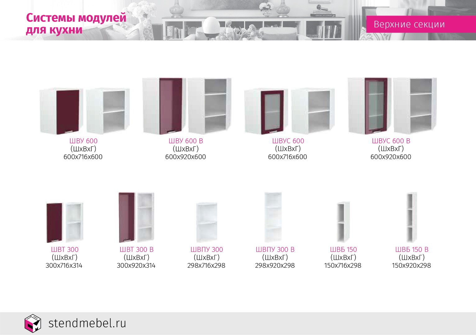 *При необходимости верхние модули можно заказать высотой 920 мм.