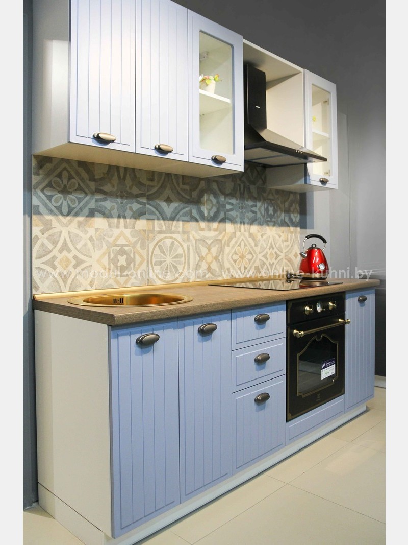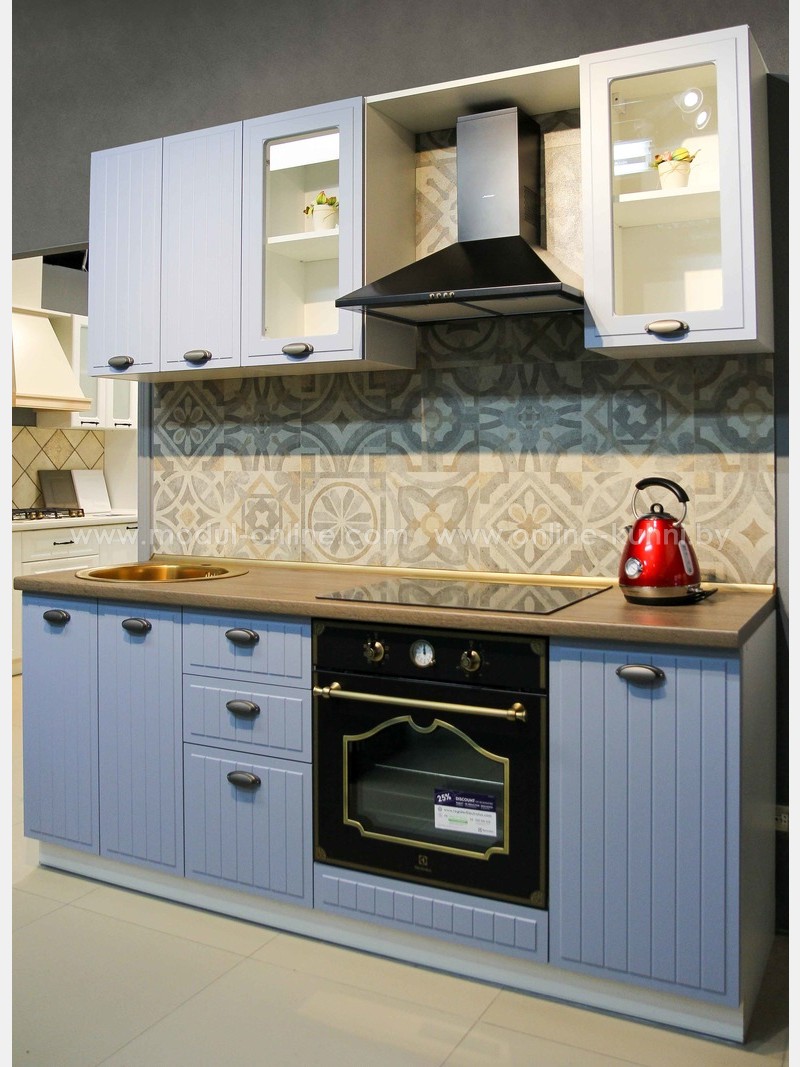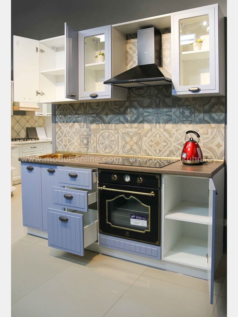 Линейная кухня «Mix-32» 1,6 м, белый-сумеречный голубой