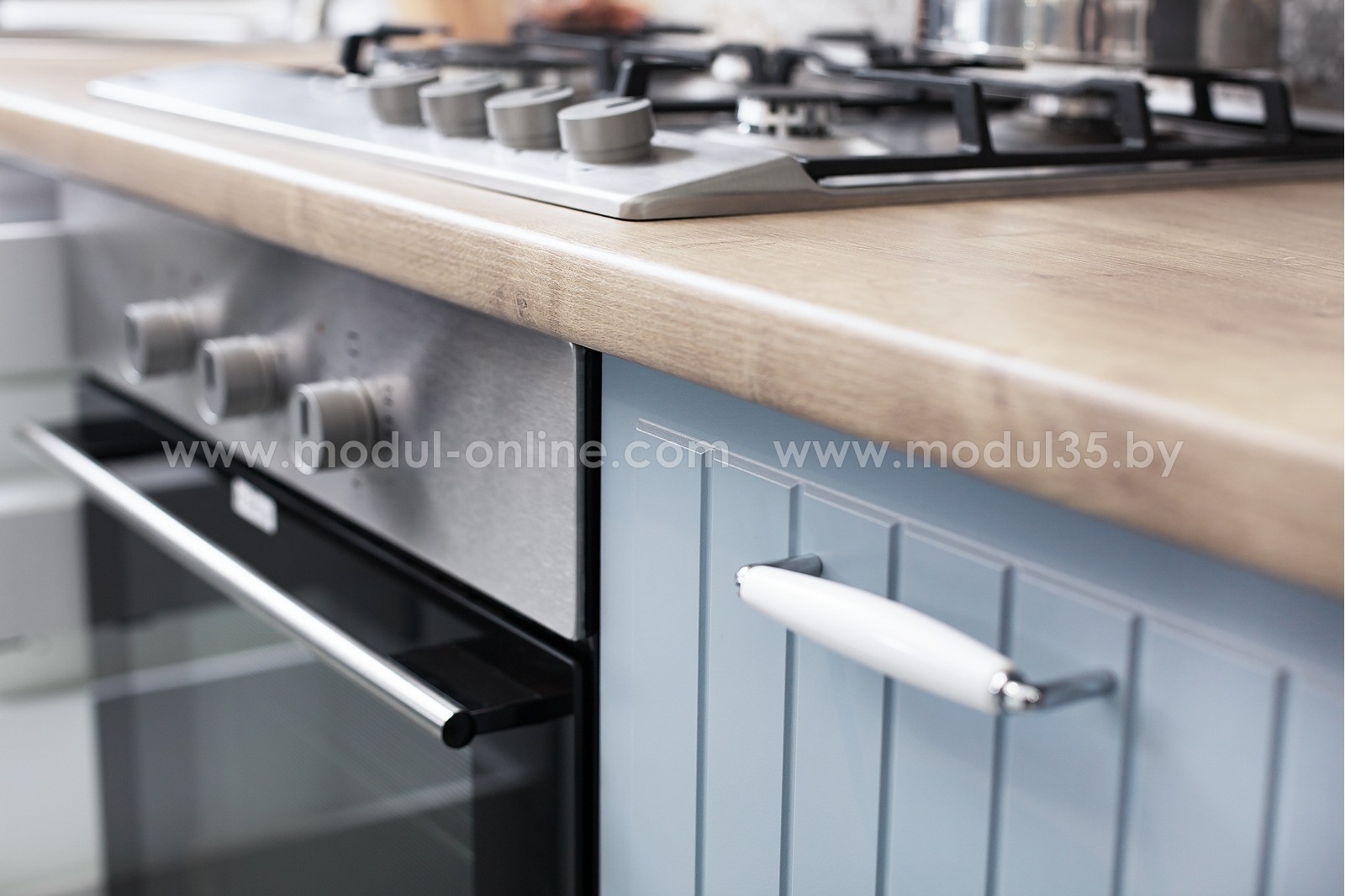 - Глубина кухни. Нижние модули - 530мм или 300мм, пеналы - 550мм, верхние модули - 300мм, столешница - 600мм или 400мм.
