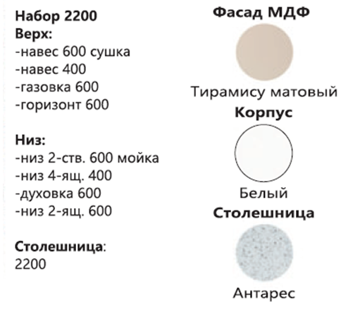 Кухня «Нувель 2.2м» - Вариант 1 - Белый софт