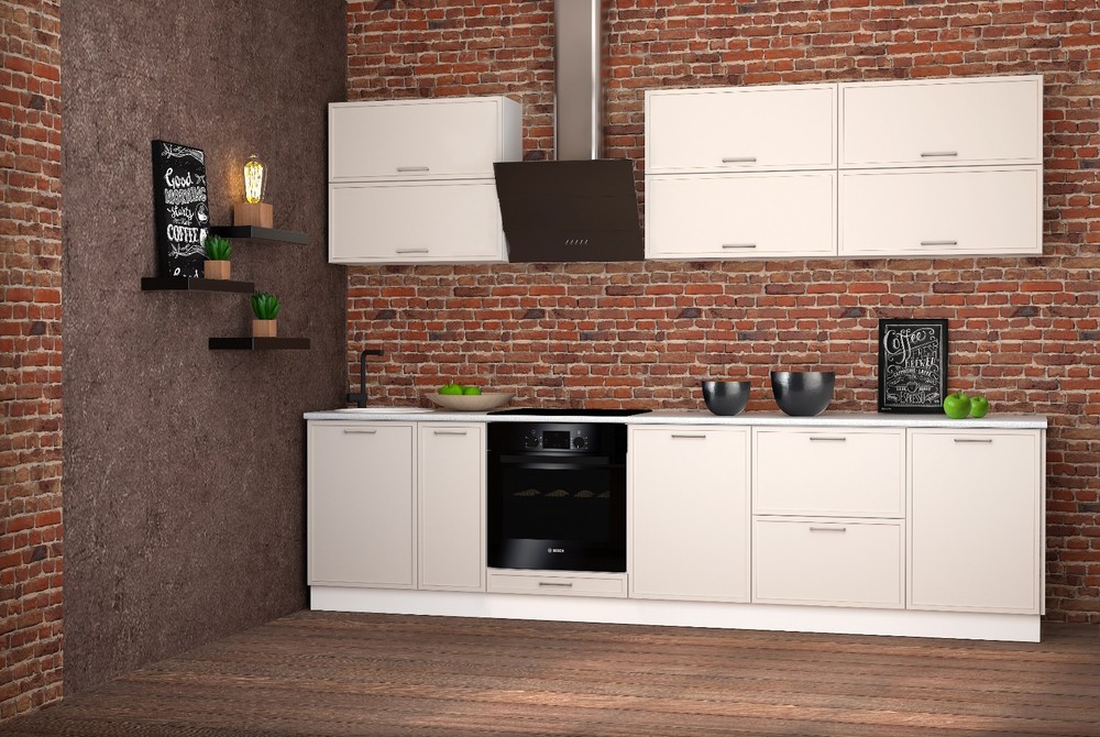 Линейная кухня из качественной ЛДСП с удобной и прочной фурнитурой.