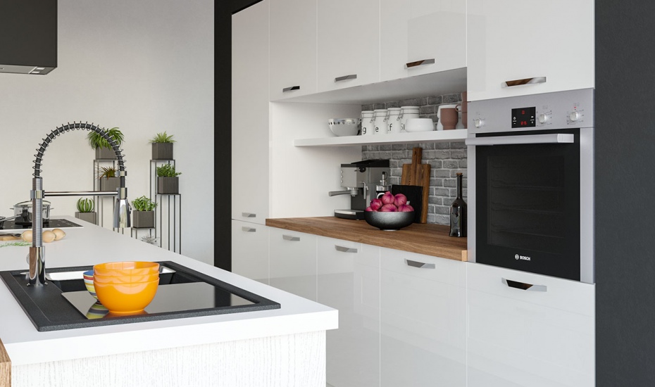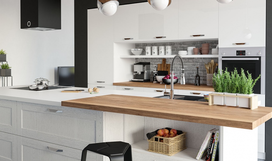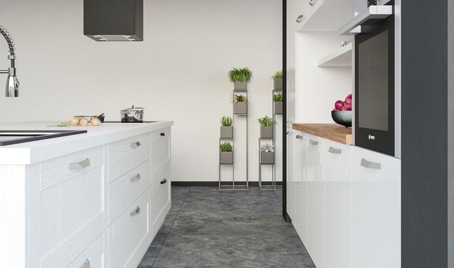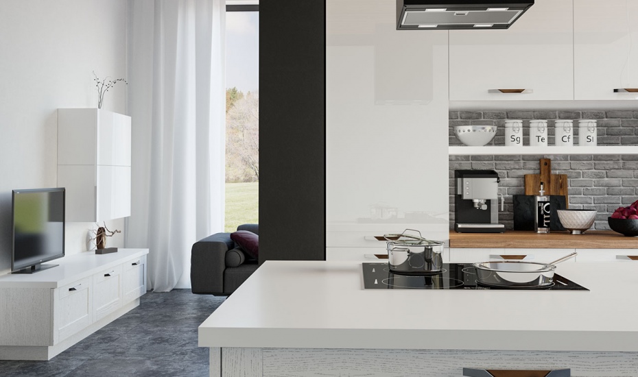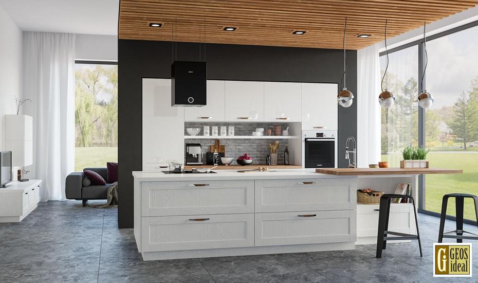 Кухня «Лимба» представляет собой линейный гарнитур в приятном гармоничном стиле. Фасады окрашены в белый цвет с применением глянца и выбеленной древесной фактуры. Данный гарнитур обеспечит вам удобство и функциональность, он имеет в своем составе все то, что необходимо для комфортного приготовления пищи. Наличие острова с барной стойкой в натуральной расцветке позволяет стильно вписать данный гарнитур в современную студию.