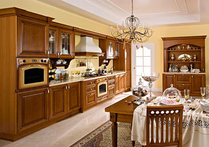 Кухня линейная «Бергонцо» – яркий пример классического стиля. Фасад изготовлен из МДФ, рамка – из натурального массива. Часть фасадов декорирована стеклянными вставками. Белая столешница подчеркивает классическое исполнение гарнитура.