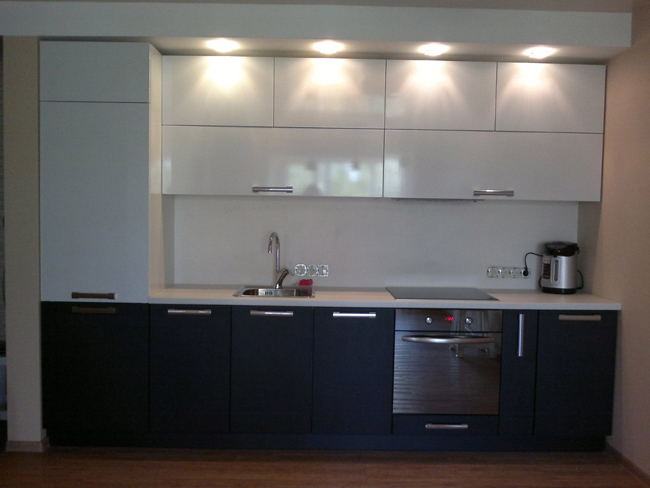 Мягкие линии фасадов. Черные глянцевые металлические ручки.
