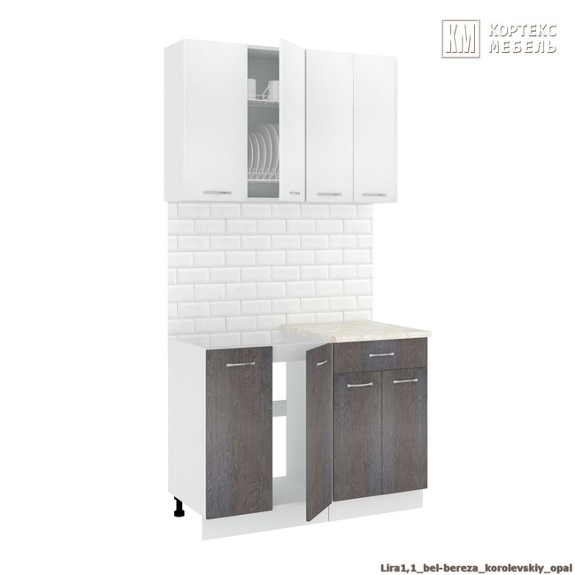 Кухня «Лира-Лайт» 1,1 белый-береза