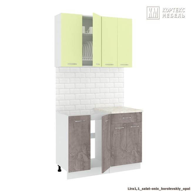Кухня «Лира-Лайт» 1,1 салатовый-оникс