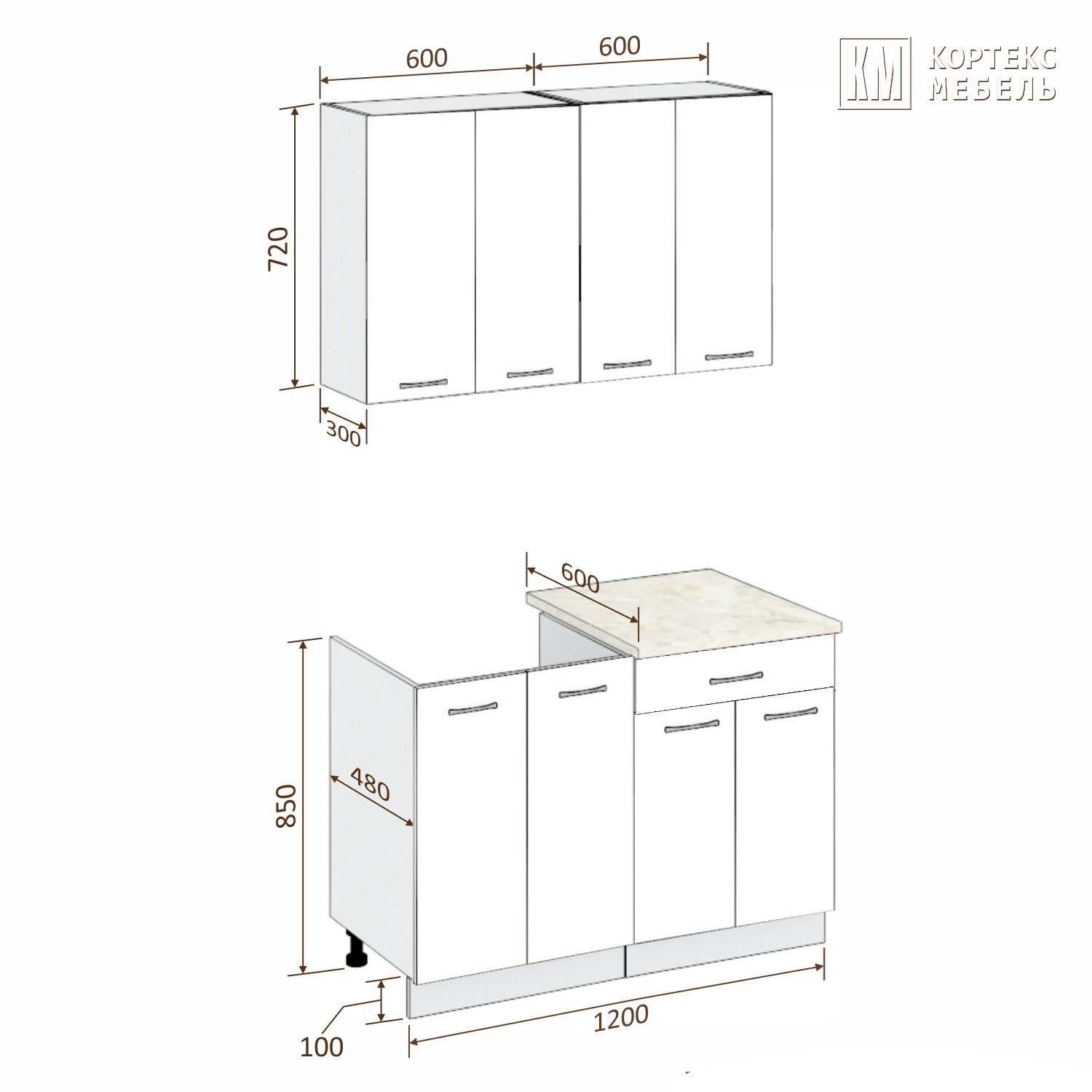 код 128276Материал фасада и корпуса: ЛДСП 16 мм. Ширина кухни 120 см.