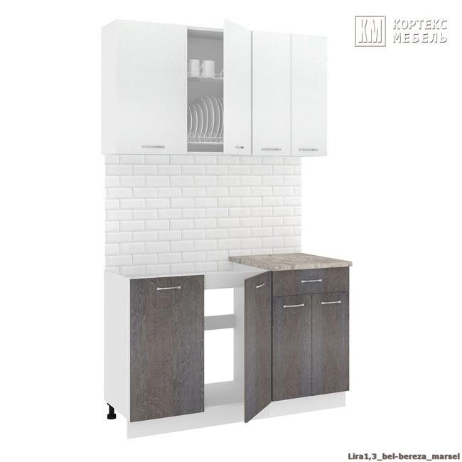 Кухня «Лира-Лайт» 1,3 белый-береза