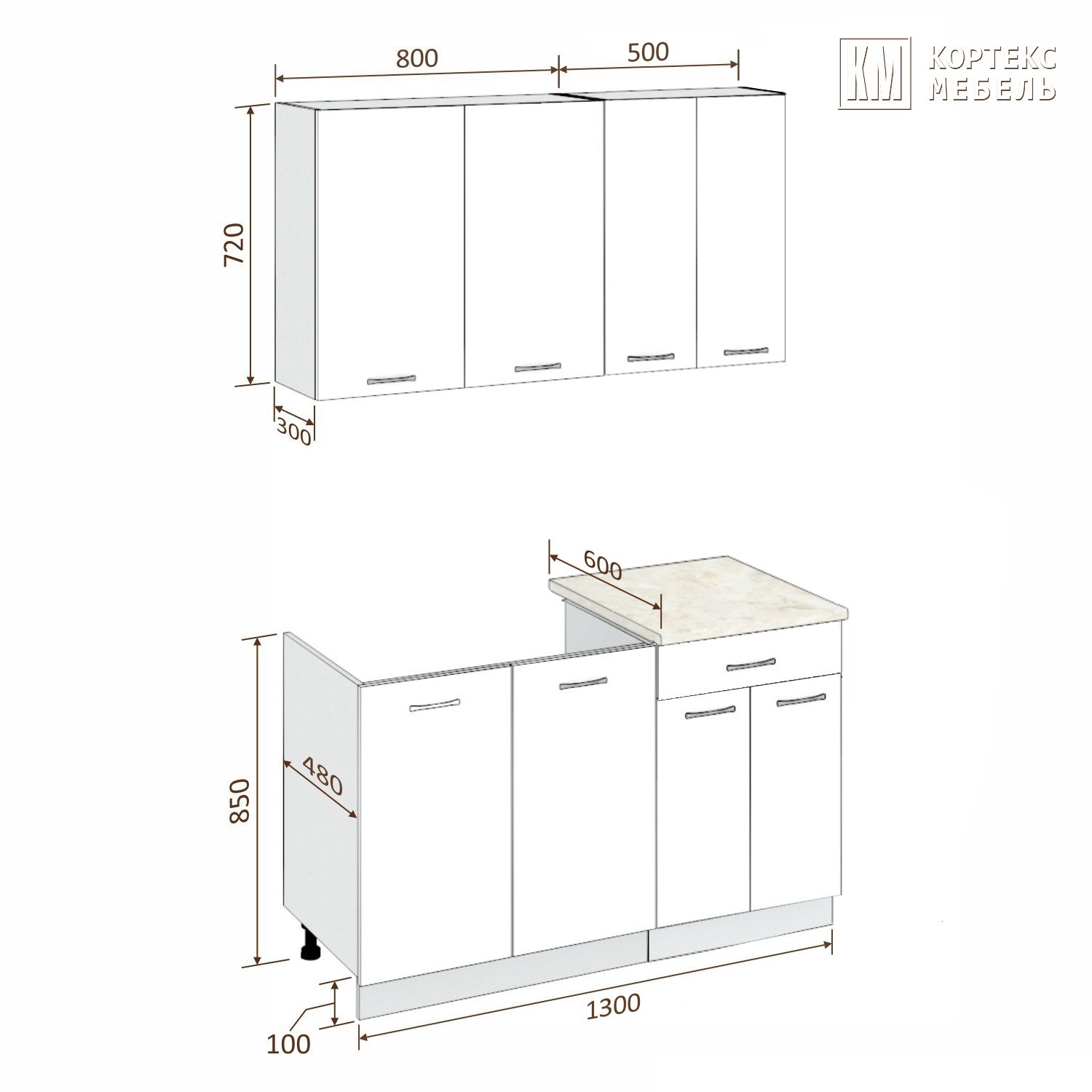 код 128286Материал фасада и корпуса: ЛДСП 16 мм. Ширина кухни 130 см.