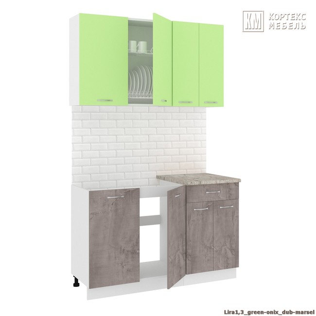 Кухня «Лира-Лайт» 1,3 зеленый-оникс