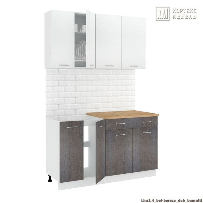 Кухня «Лира-Лайт» 1,4 белый-береза