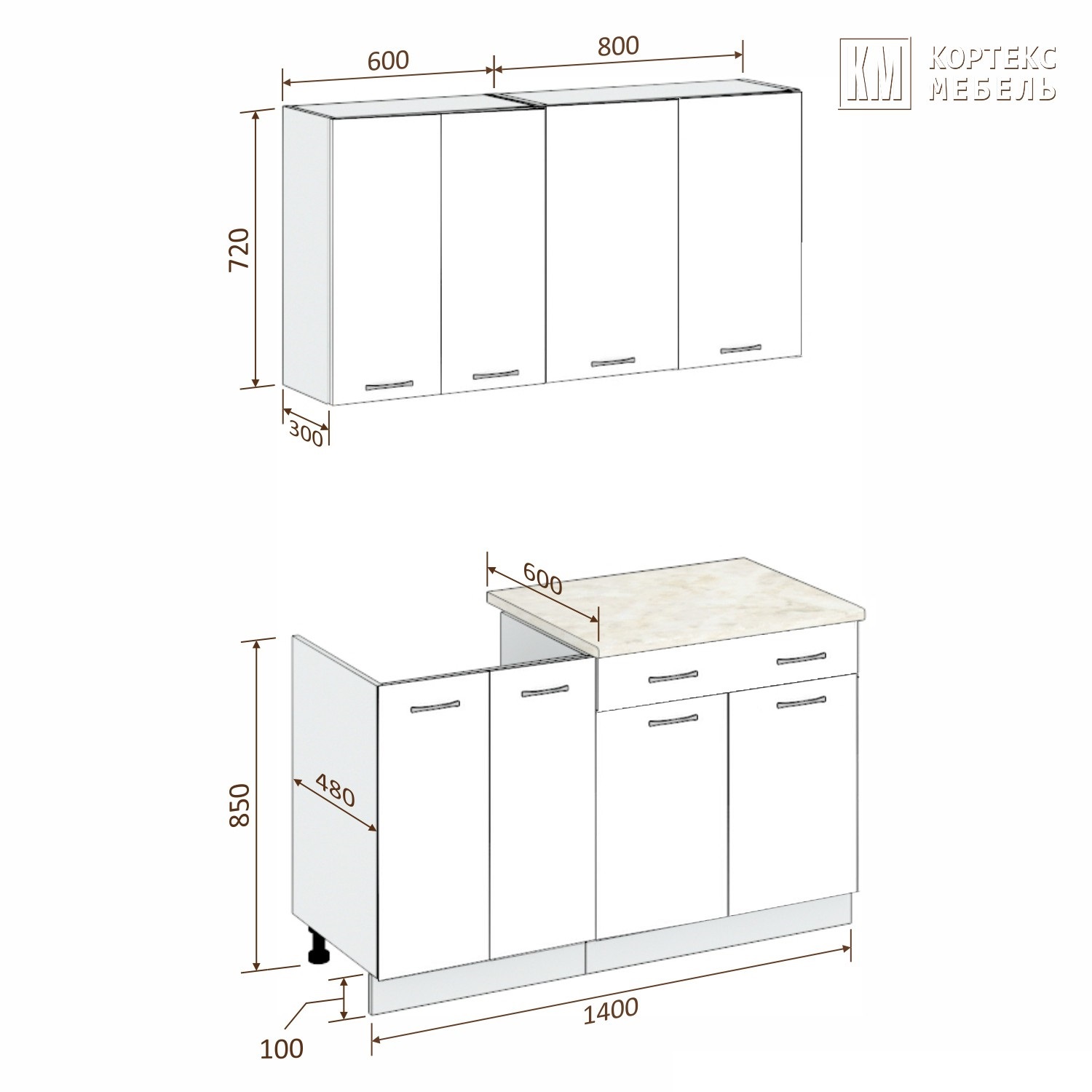 код 128290Материал фасада и корпуса: ЛДСП 16 мм. Ширина кухни 140 см.