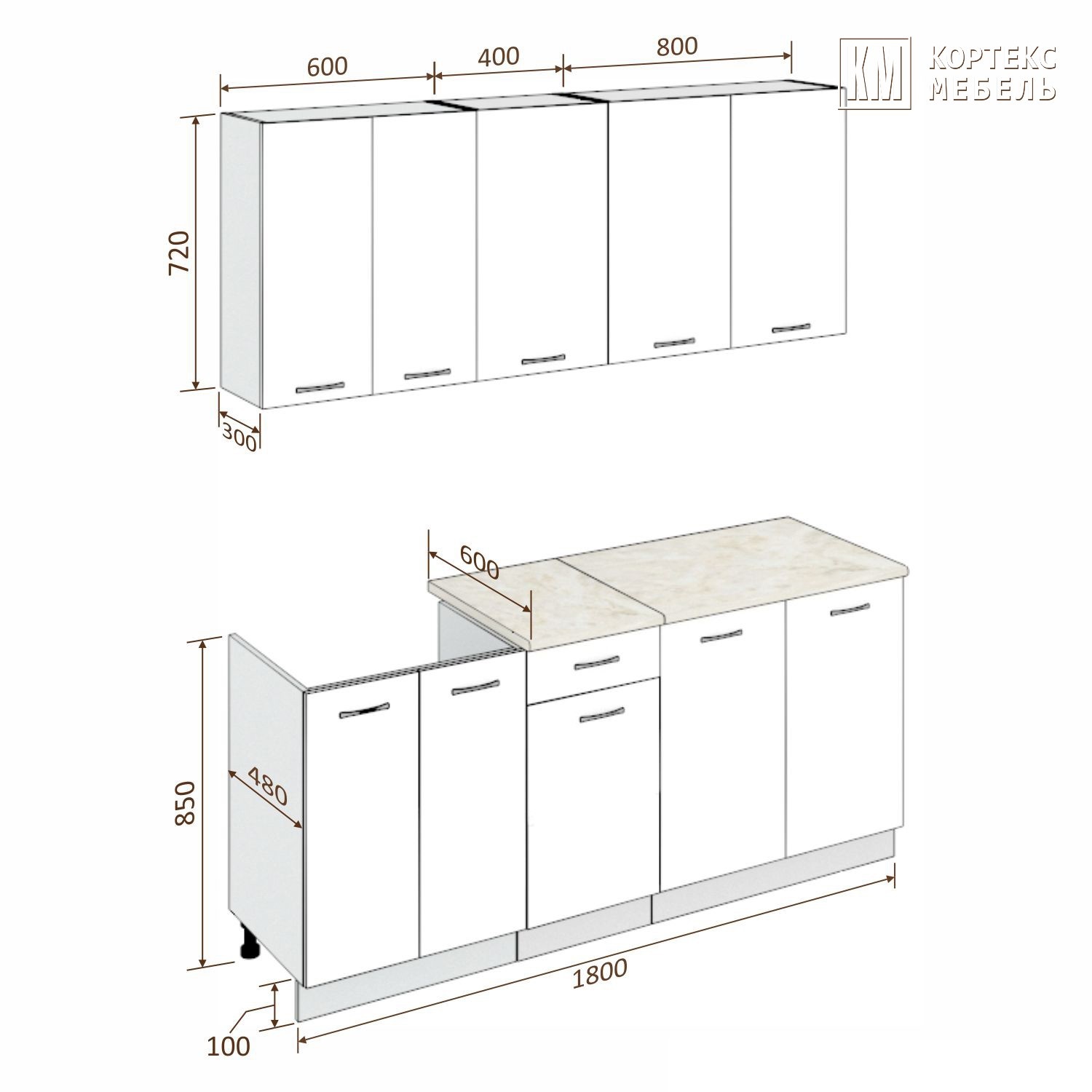 код 128337Материал фасада и корпуса: ЛДСП 16 мм. Ширина кухни 180 см.