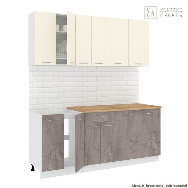 Кухня «Лира-Лайт» 1,9 крем-оникс