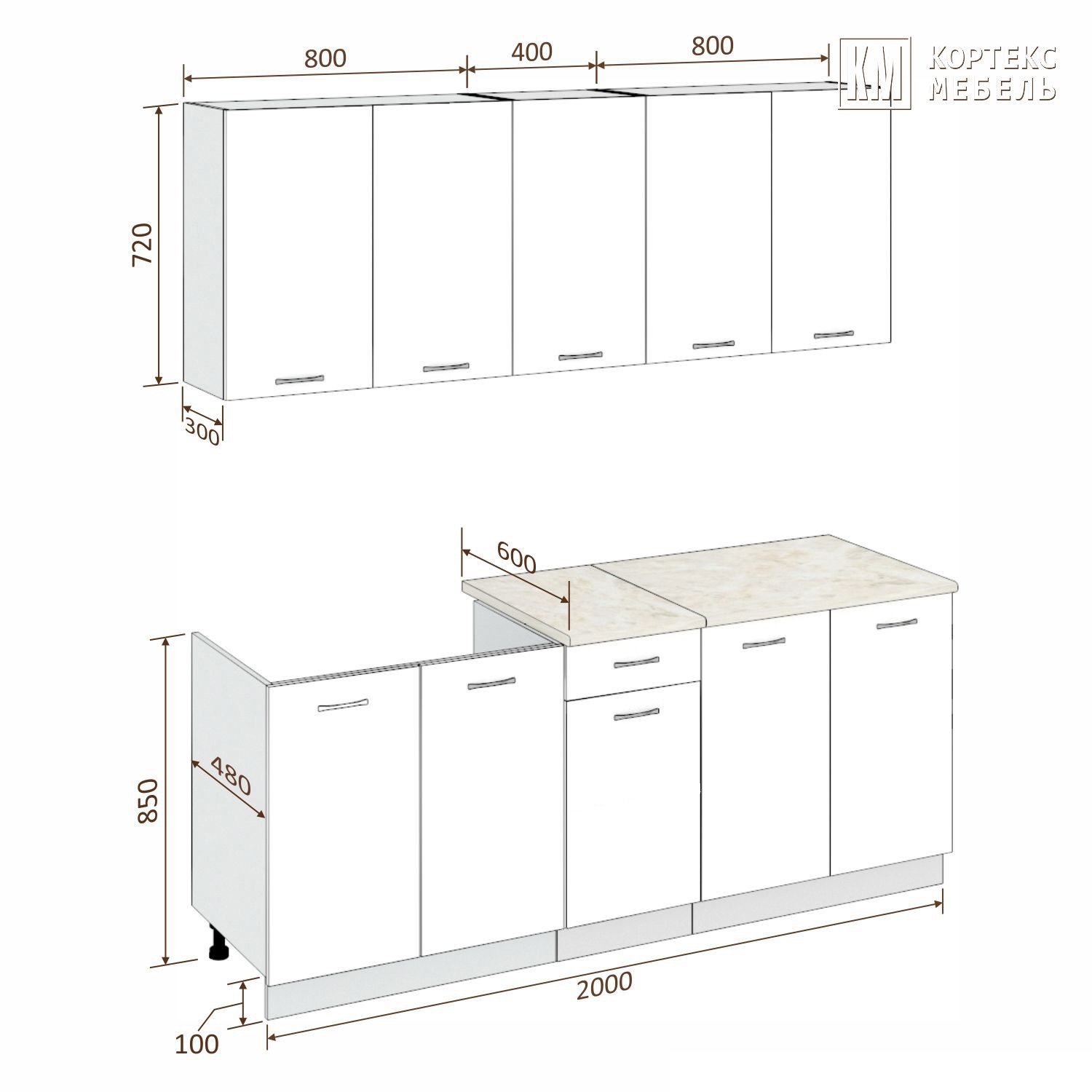 Длина кухни: 2.0 м. Материал фасада: ЛДСП.