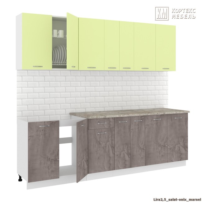 Кухня «Лира-Лайт» 2,5 салатовый-оникс