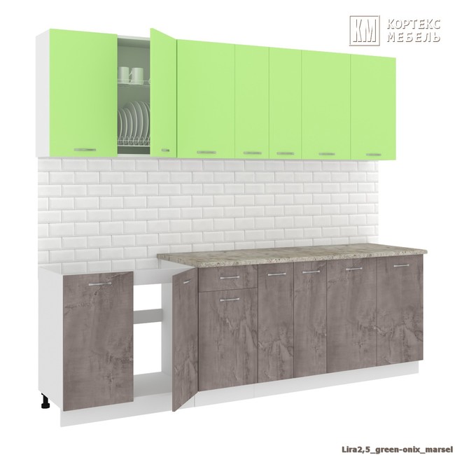 Кухня «Лира-Лайт» 2,5 зеленый-оникс