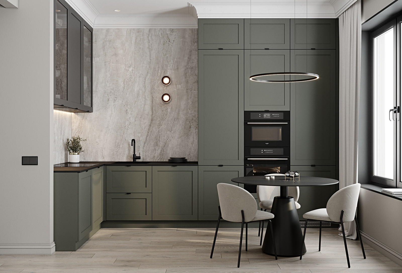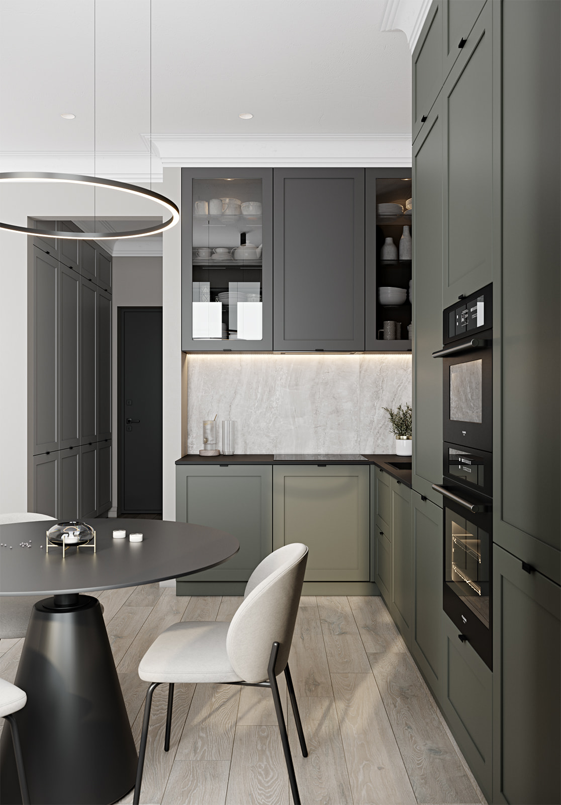 Современный скандинавский дизайн. Ширина кухни 240 см.