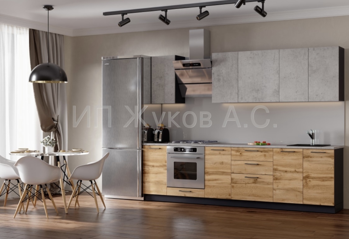 Кухня Лофт 2.0 Премиум (60 под мойку/60/40/40)(ящик под мойку столешницей комплектуется отдельно). Верх-бетон, низ- дуб вотан).