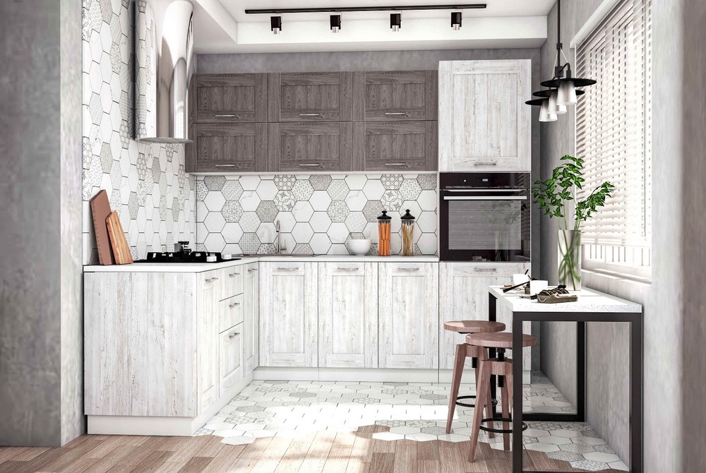 Кухня угловая «Луиза Люкс» 1.2x2.1 м Флитвуд шампань - Флитвуд белый