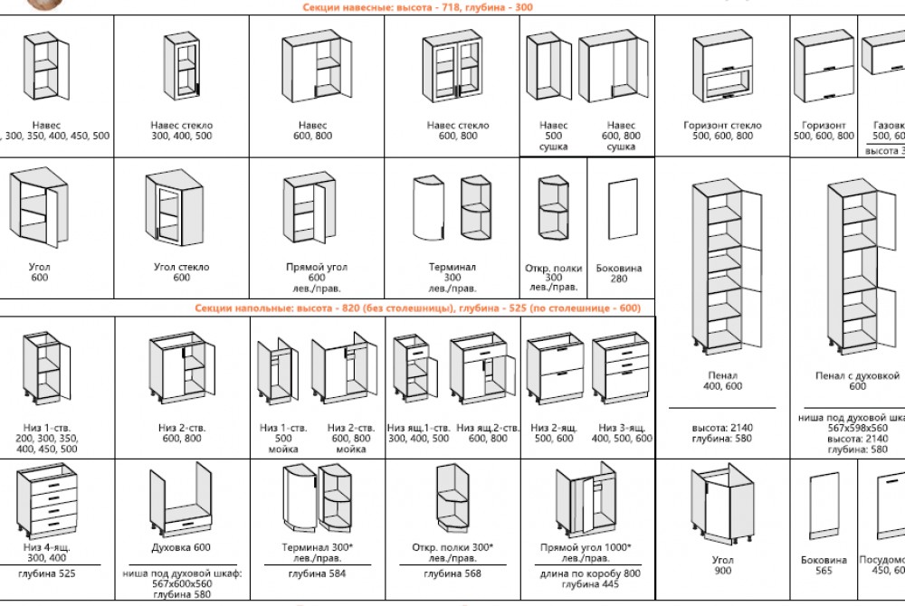 Можно комплектовать кухню из модулей других размеров и цветов.