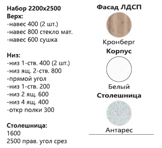 Материал фасада и корпуса: ЛДСП 16 мм. Ширина кухни 180 см.