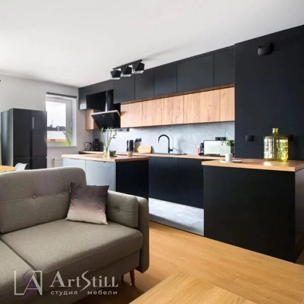 Фасады: Fenix супер матовый цвет черный;