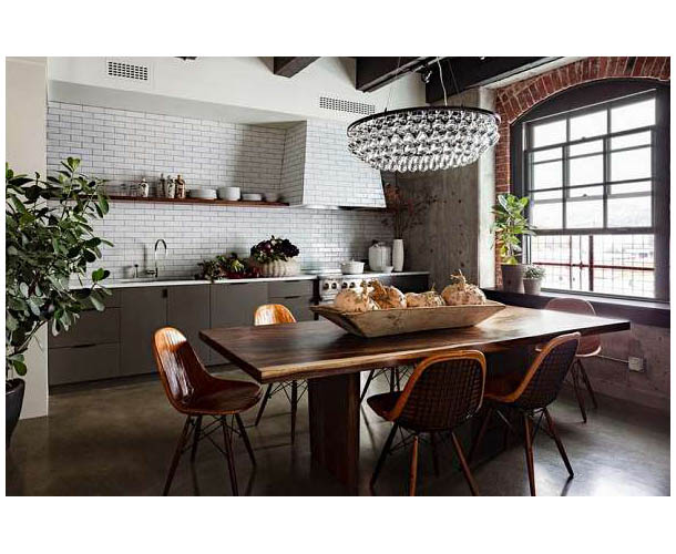 Представленная кухня выполнена в темно-коричневом цвете. Гарнитур украшен белой широкой столешницей. Вместо подвесных шкафчиков используется вместительная открытая полка. Кухня изготовлена из ЛДСП и имеет фрезерованные ручки.