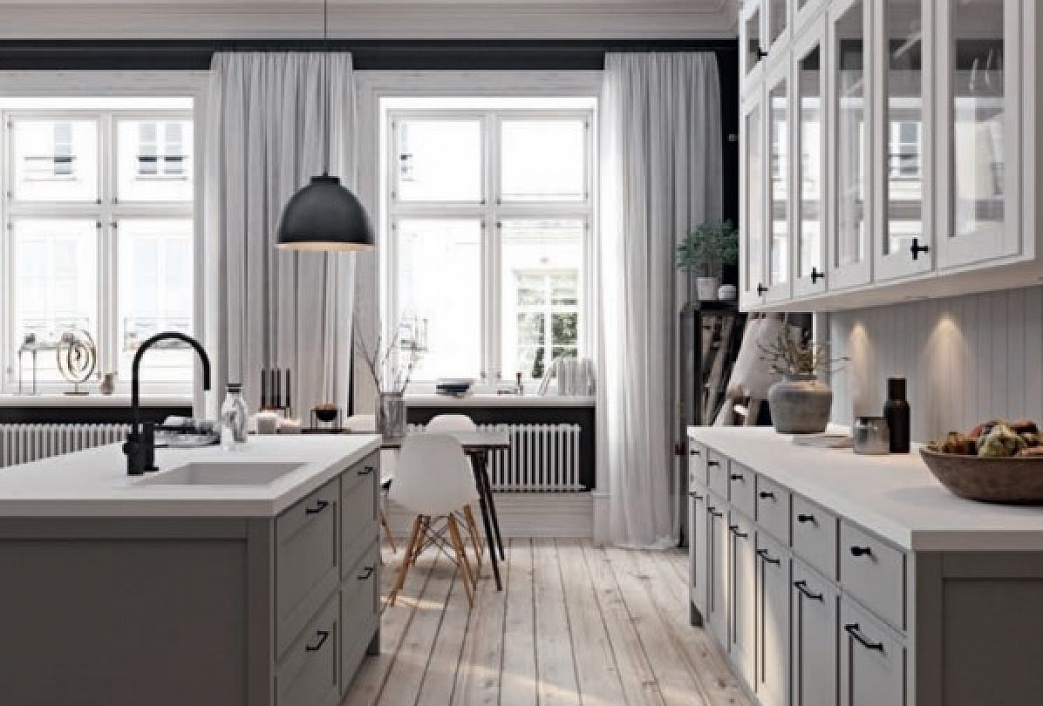 Современный скандинавский дизайн. Ширина кухни 180 см.